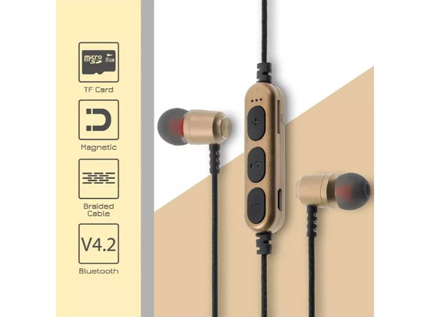 Ασύρματα Ακουστικά Magnetic Metal Headset BT V4.2 MS-T15 Gold