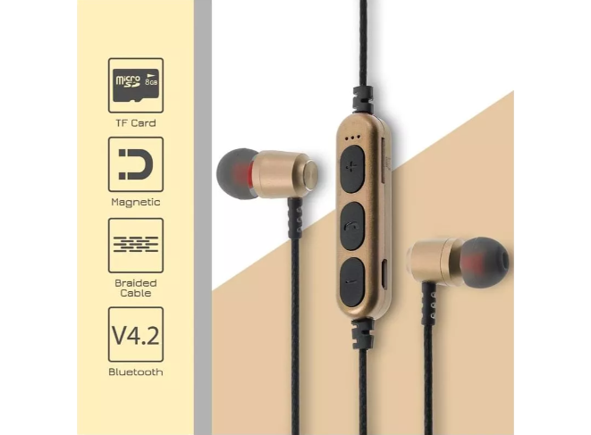 Ασύρματα Μαγνητικά Μεταλλικά Ακουστικά MS-T15. Απολαύστε υψηλής ποιότητας ήχο με ακουστική απαράμιλλης διαύγειας. Μαγνητικά ακουστικά που "δένουν" γύρω σας, εφαρμόζουν με άνεση και σταθερότητα στο αυτί σας και μπορείτε να λαμβάνετε ή να δέχεστε τηλεφωνικές κλήσεις χωρίς να κρατάτε το κινητό στο χέρια σας. Διαθέτει ενσωματωμένο μικρόφωνο και κουμπιά ελέγχου για να διαχειριστείτε τις κλήσεις σας, να ακούσετε την αγαπημένη σας μουσική και πολλά άλλα. Πλεκτό καλώδιο για μέγιστη αντοχή στον χρόνο και στην χρήση. Έκδοση: Bluetooth 4.2 + EDR, Απόσταση: 10m, Μικρόφωνο: ενσωματωμένο, Χρόνος εργασίας: 4 ώρες, Χρόνος φόρτισης: 2 ώρες, Χρόνος αναμονής: 100 ώρες, Μπαταρία: 80 mAh, Συχνότητα: 20Hz -20kHz, Ευαισθησία: 112dB ± 3 dB. Πρωτοποριακός τεχνολογικός σχεδιασμός που δέχεται απευθείας κάρτα SD. Μόνο €6.90 + ΦΠΑ στο PCRAMA.
