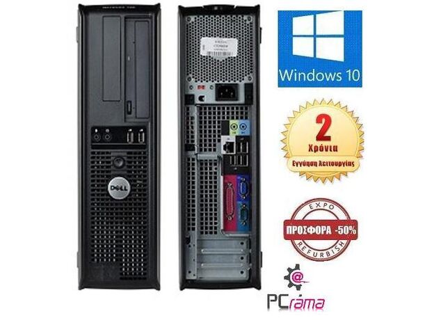 To Dell Optiplex 755 SFF Intel Dual Core E8400 3.00 Ghz/2GB/160GB/DVD-RW +USB KB/Mouse (Δυνατότητα αναβάθμισης και σε Τετραπύρηνο Q6xxxx). Κατάλληλο για γραφιστικές εφαρμορές αλλά και για απαιτητικές εφαρμογές γραφείου. Συμπεριλαμβάνει φυσικά λειτουργικό σύστημα Windows 10 Home, 4GB μνήμης και 80άρη σκληρό. Δικό σας στα €79 + ΦΠΑ MONO !!. Ευκαιρία !!! ΠΡΟΛΑΒΕΤΕ !! Μόνο στο PCRAMA. Συνοδεύεται από ελληνικό πληκτρολόγιο USB και ποντίκι. Πλήρη Χαρακτηριστικά: Intel Core2Duo E8400 3.00 Ghz, 2GB DDR3 Memory, 160GB SATA2 Hard Disk, DVD-RW, ESATA, DisplayPort (Γραπτή Εγγύηση 2 Έτη) (ΙΖΟΤ-755SFF-170622) (Expo/Εκθεσιακό κομμάτι).