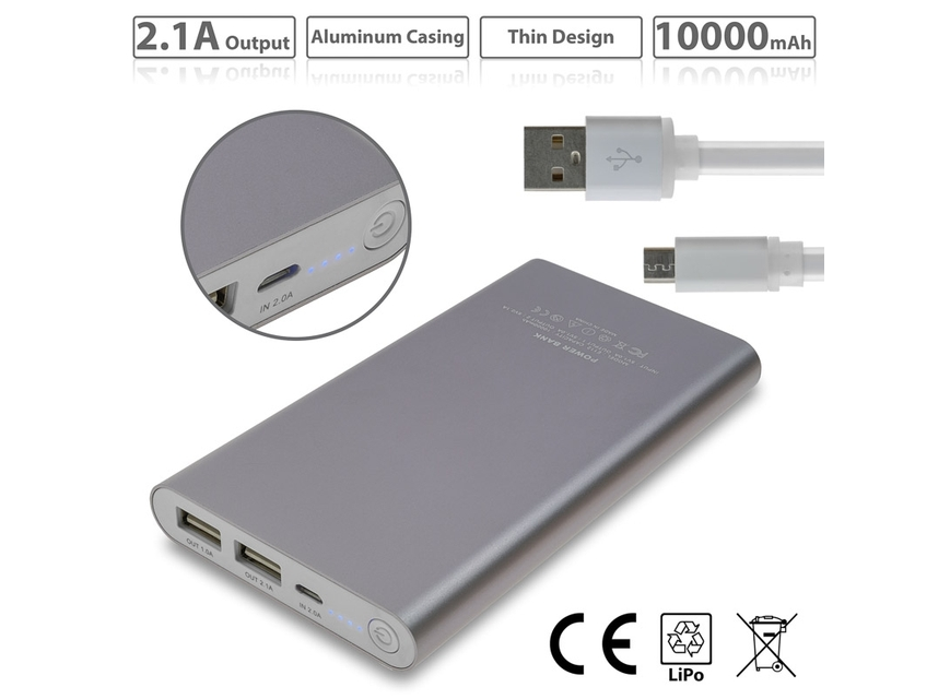 Powerbank Αλουμινίου 10.000mah Silver (Ασημί)
